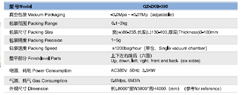 称重式真空包装系统:砖袋真空包装机集送料、称重、制袋填充、整形、抽真空、封口、切袋口、制品运送为一体的全自动包装机。这样就可以。该装置适合真空包装大米和谷物等谷物以及咖啡等粉状质料。